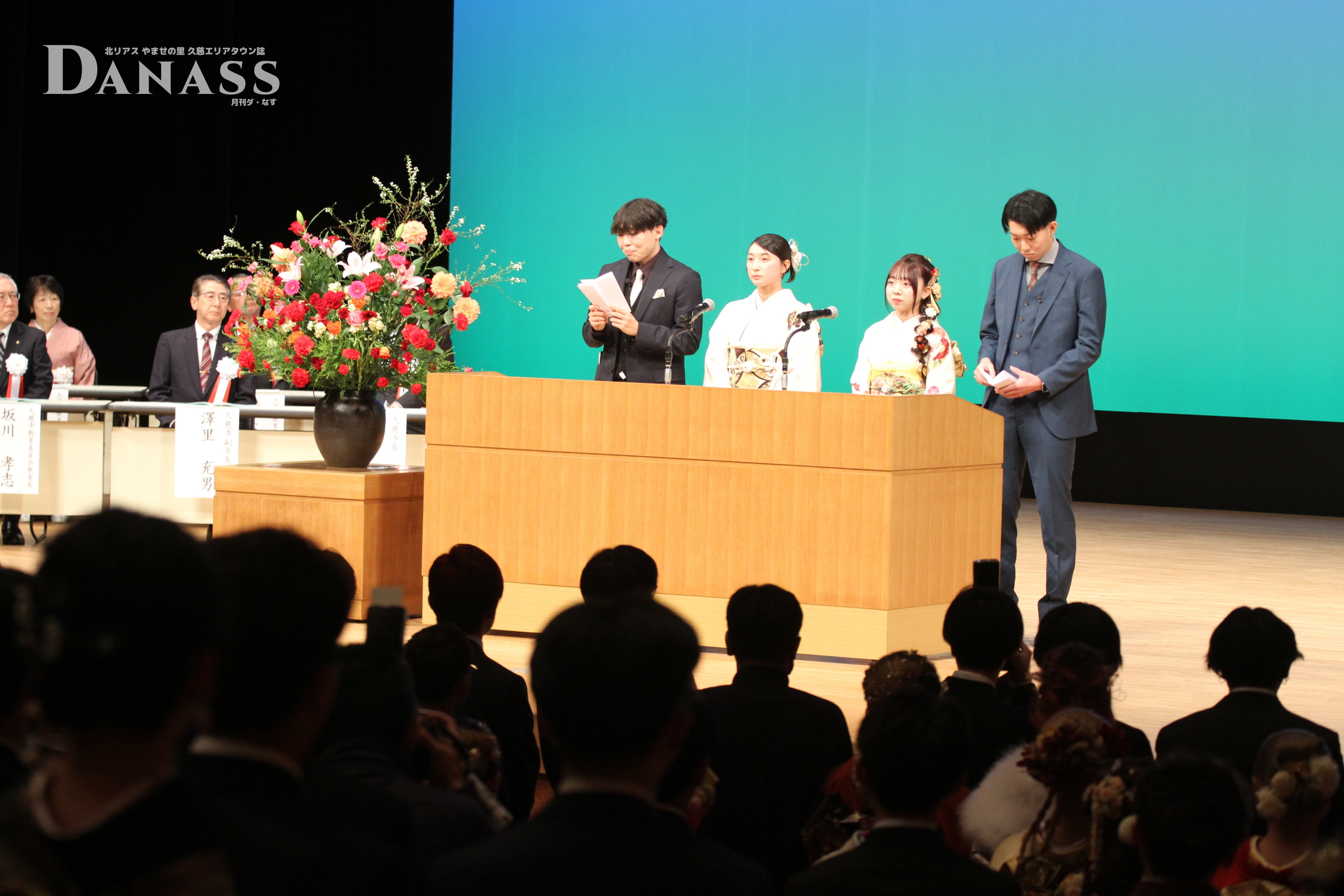 久慈市の二十歳のつどいが1月11日、久慈市文化会館アンバーホールで開かれ20歳を迎えた若者たちが晴れやかな表情で門出の1日を過ごしました。